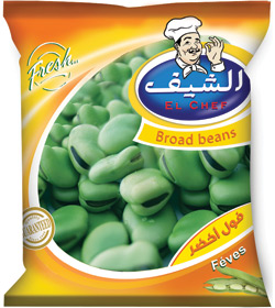 الفول الأخضر الشيف معروف بكونه طازج و به نسبة تركيز سكر عالية و لذلك يتم أختيار أجود أصناف الفول الأخضر فى بداية الموسم للتصنيع.