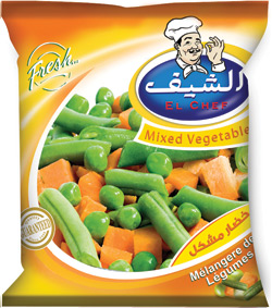 نقوم بأختيار أجود أصناف البسلة الطازجة و الجزر و الفاصوليا الخضراء. الشيف تطبق مناهج تصنيع الخضار المشكل بحيث يتفق مع بداية الموسم حينما تكون طازجة و بها نسبة تركيز سكر عالية .